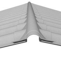Se instala en la cumbrera de una cubierta a dos o más aguas. Disponible para pendientes de techo de 27% (15°) y de 36% (20°) y 47% (25°) sobre pedido. Debe ser asegurado con 4 tornillos, 2 por cada lado en la segunda y quinta onda. Tener en cuenta la aplicación de un sellante debajo de la cabeza del tornillo, no silicona.