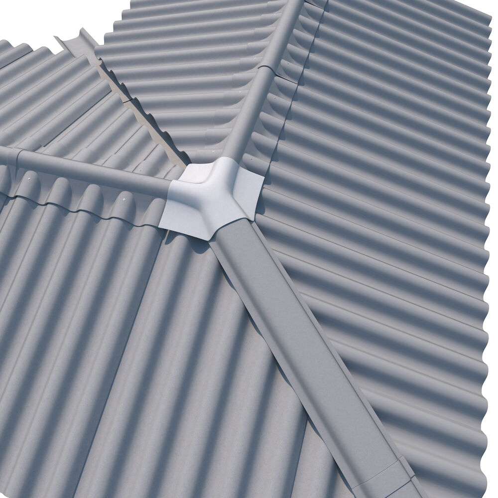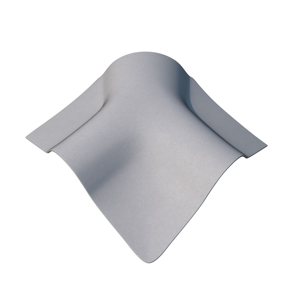 Pieza que une una limatesa y una limahoya, con dos líneas de caballetes, que se encuentran a 90° viene para pendientes de 27% (15°) y de 36% (20°) bajo pedido. Debe ser asegurado con tornillos tipo paleta o amarras.