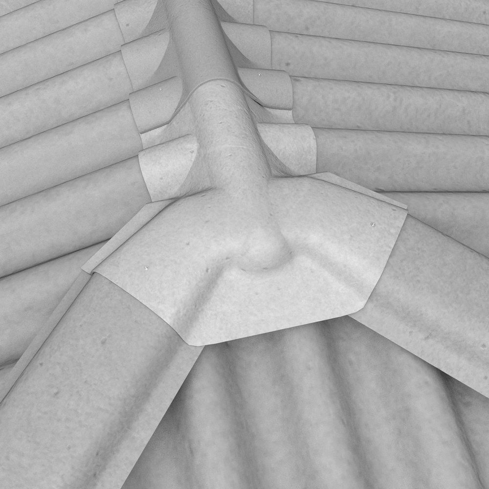 Pieza para unir una serie de caballetes fijos con limatesas que se abren a 45°, caso que se da donde parten tres aguas. Disponible para pendientes de 27% (15°) y de 36% (20°) bajo pedido. Debe ser asegurado con tornillos tipo paleta o amarras.