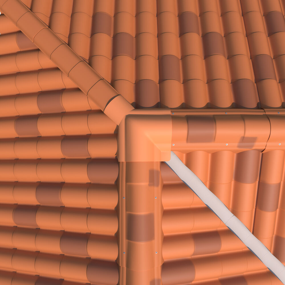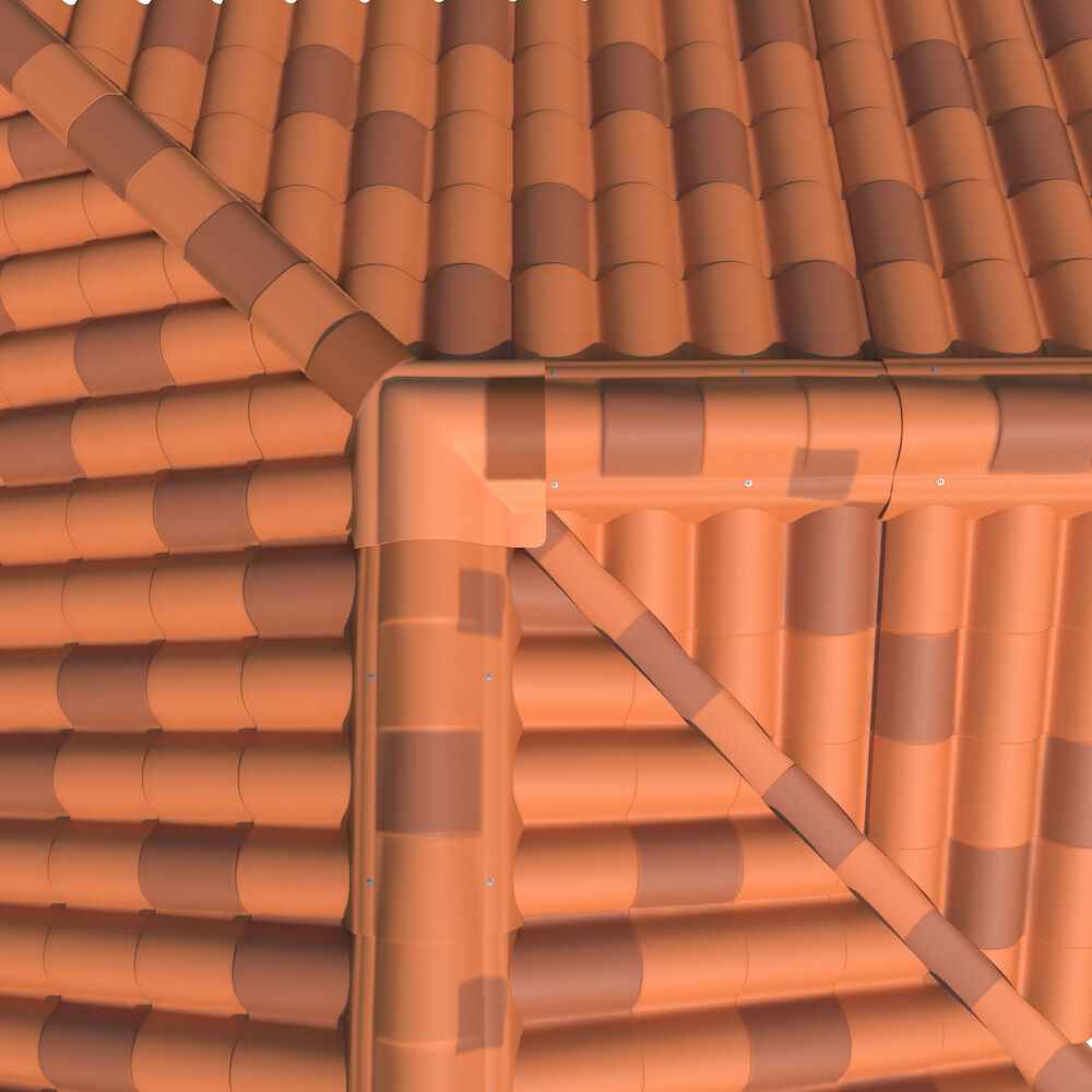 Pieza que une una limatesa y una limahoya, con dos líneas de caballetes, que se encuentran a 90° viene para pendientes de 36% (20°). Debe ser asegurado con tornillos tipo paleta o amarras.